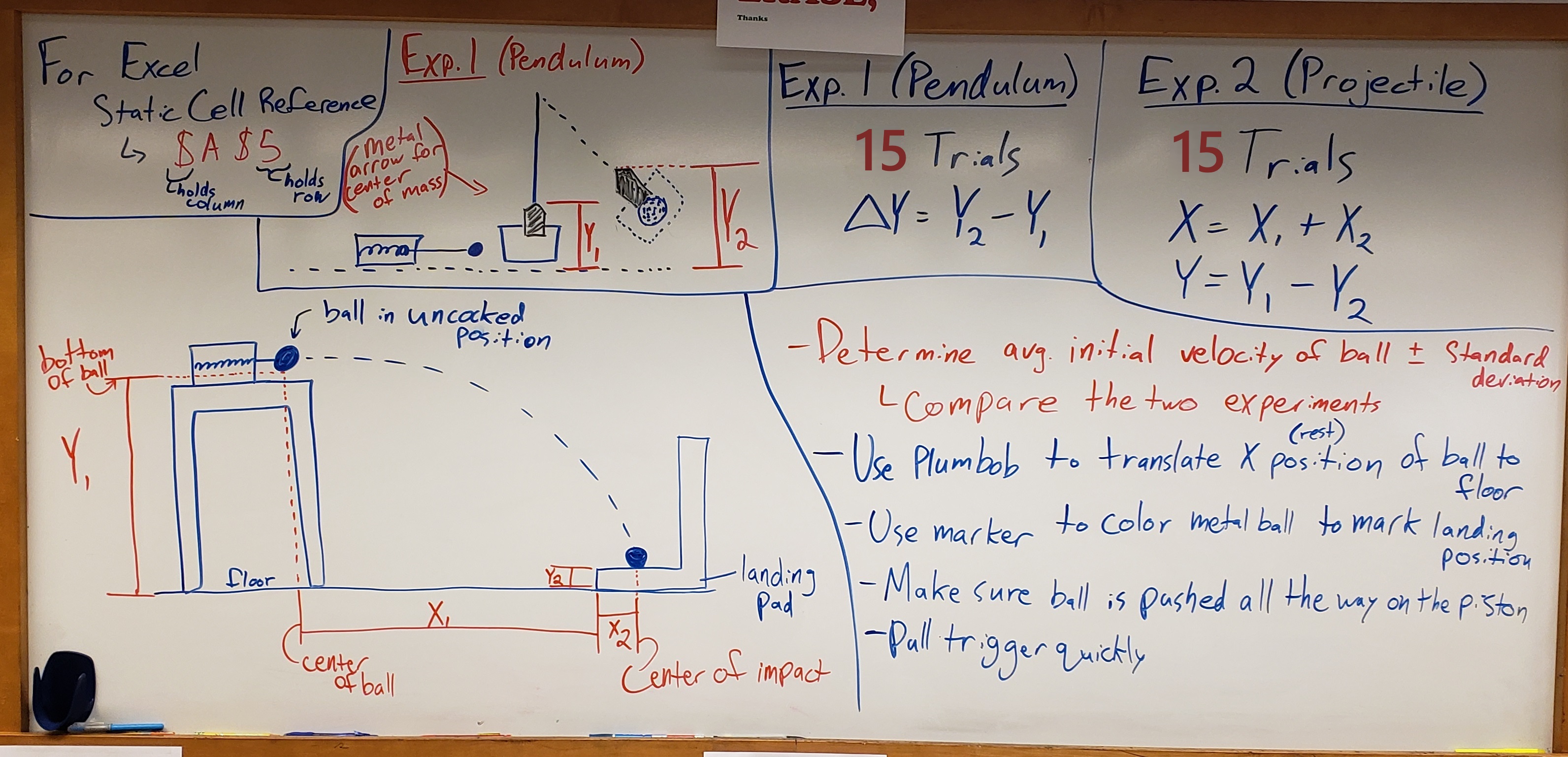 After you double-check your methodology and that calculations are accurate in Excel and complete, repeat the steps in Ballistic Pendulum — Data Collection for the rest of your trials.