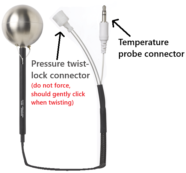 Fig. 38 The picture shows the Absolute Zero experiment. The pressure and temperature connectors are shown exiting at the end of the black cable of the device. Note: be gentle with the pressure connector; you need to insert and gently twist to lock it in place. DO NOT FORCE IT.#