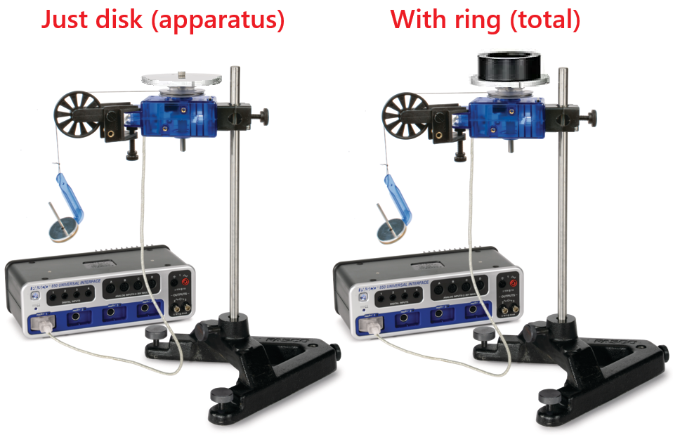 Measure the angular acceleration \(\alpha_{\mbox{total}}\) of the ring plus the apparatus (the disk and the RMS).