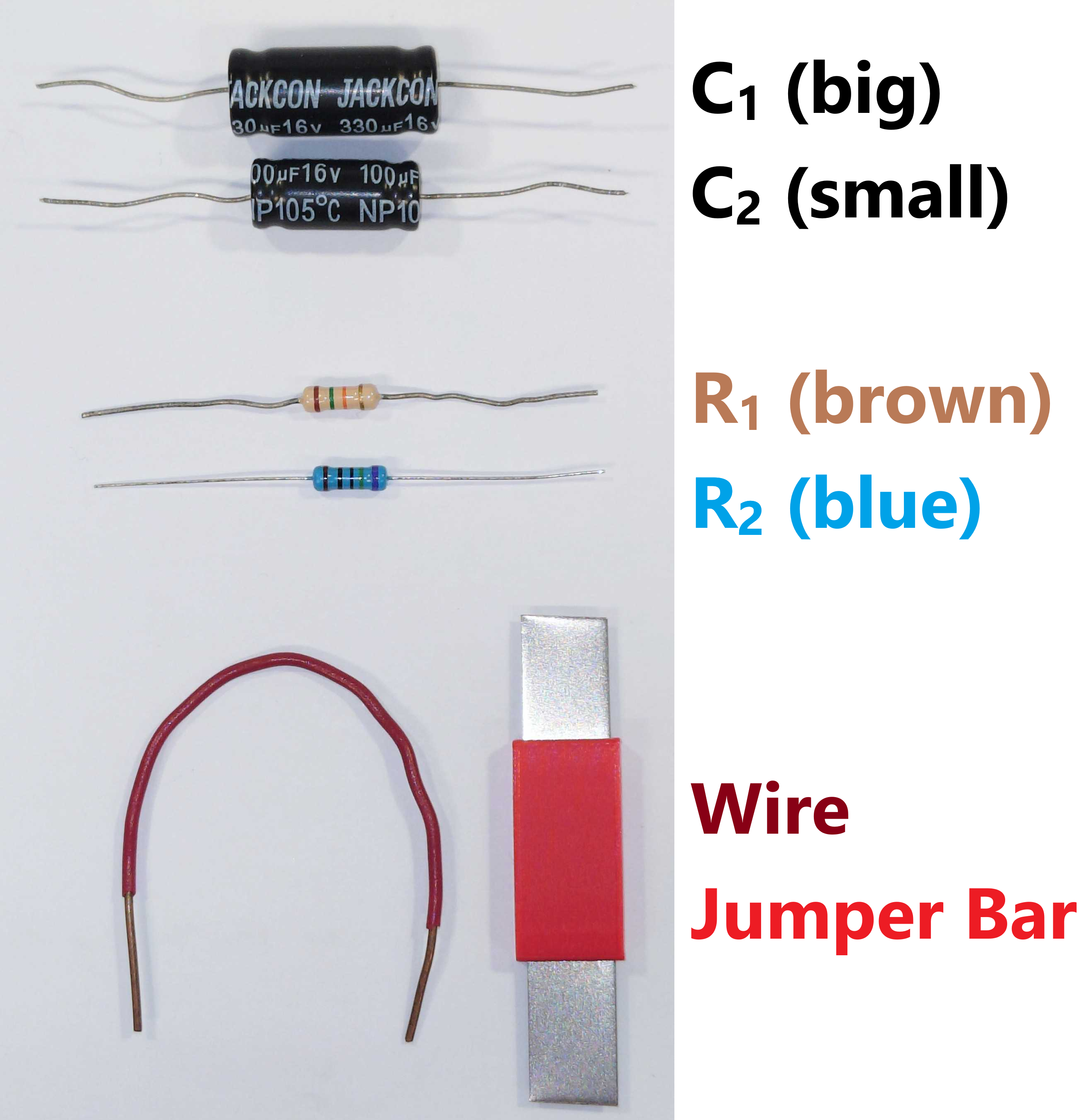 Fig. 106 Example of capacitors, resistors, and wire and jumper bar to be used.#
