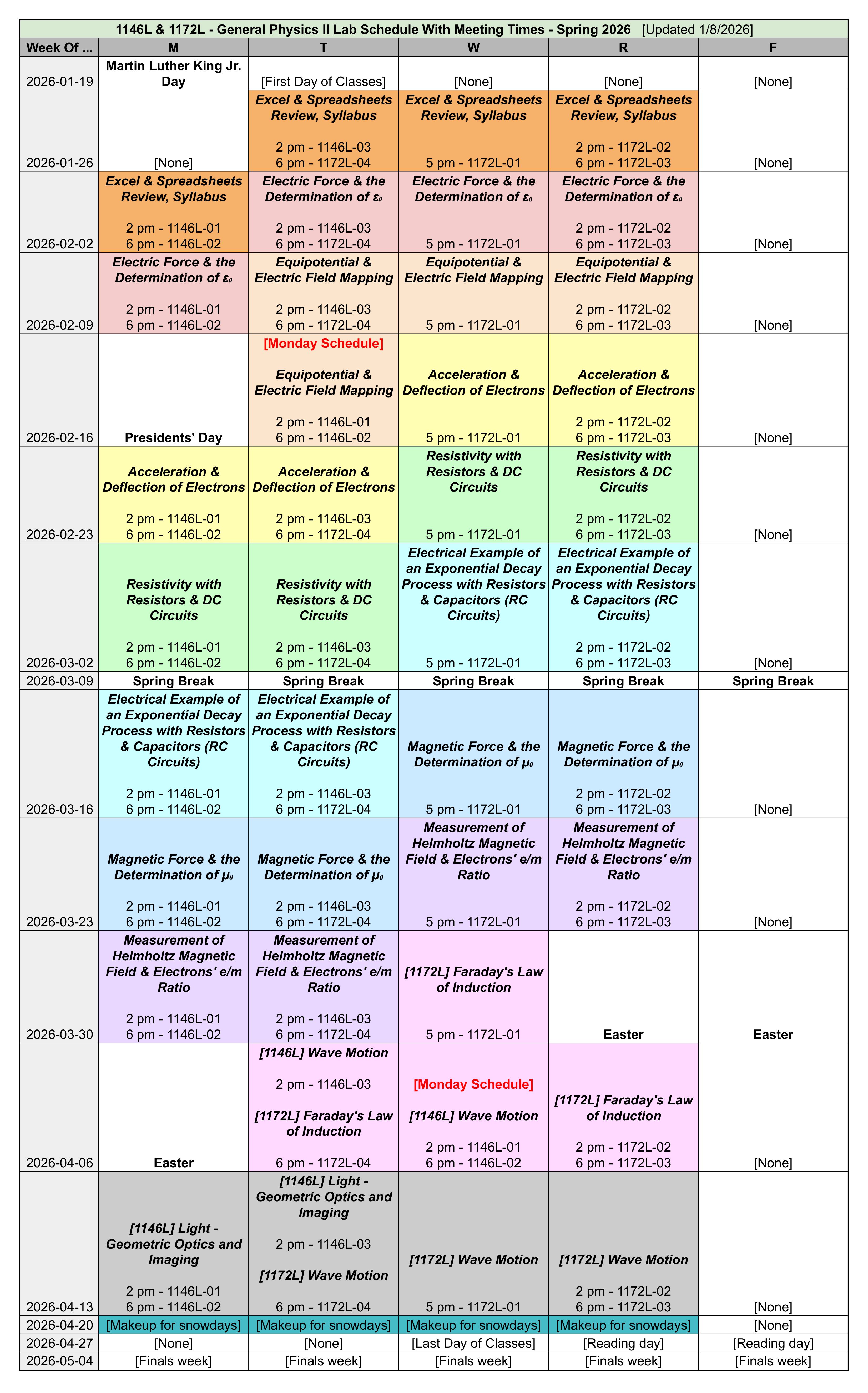 Full Lab Schedule with Meeting Times# Printed Lab Schedule# Fig. 1 Full schedule for PHYS 1146L and 1172L with meeting times#